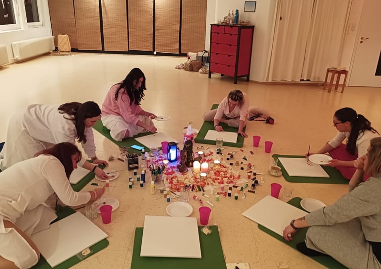 In unserne Treffen fließen wir durch Embodiment-Übungen, meditieren, lachen und sprechen frei - alles im Fluss des Moments. Die entstehende tiefe Verbundenheit in einem Frauenkreis ist überwältigend und natürlich, ein Wissen, das schon unsere Ahninnen teilten. Die Kraft dieser Erfahrung lässt sich kaum in Worte fassen.